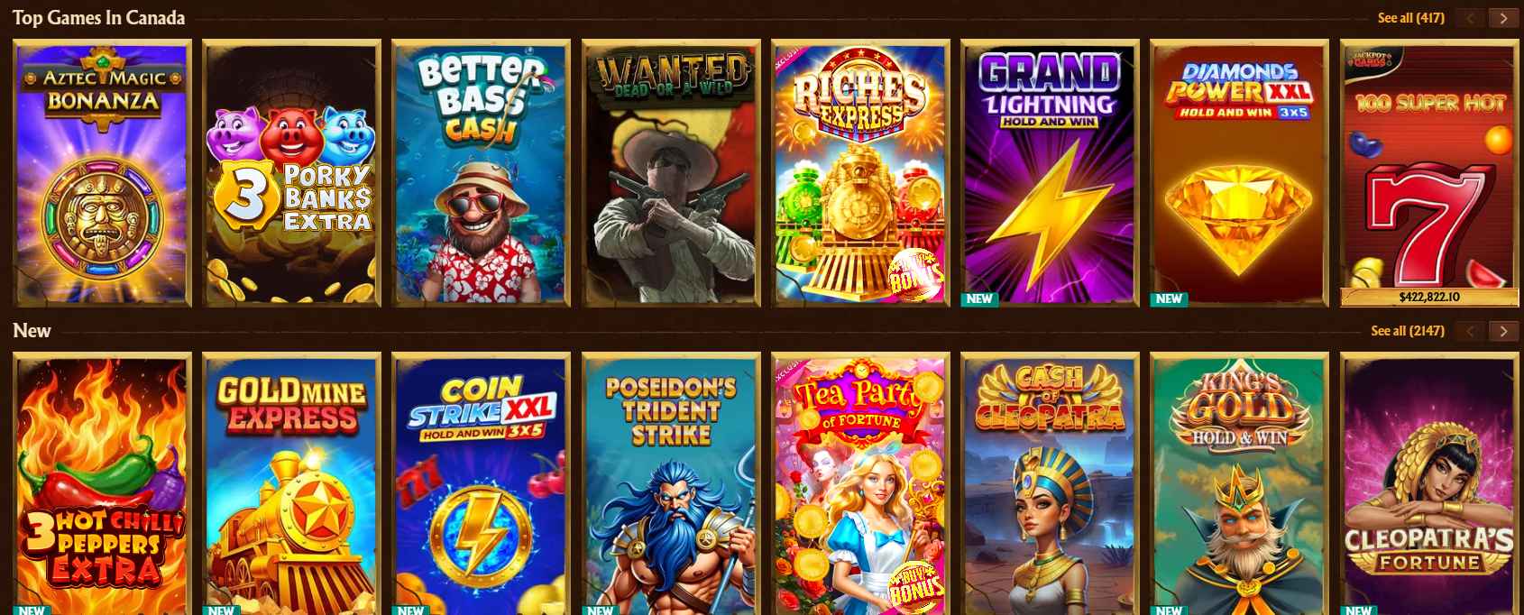 Yes — added in October 2022 as part of a major platform update. Pre-match and live in-play betting are available. A Sports Cashback offer gives 10% back on sportsbook losses up to C$750. It’s a competent addition rather than a specialist sportsbook, but it works well for players who want everything consolidated under one account.