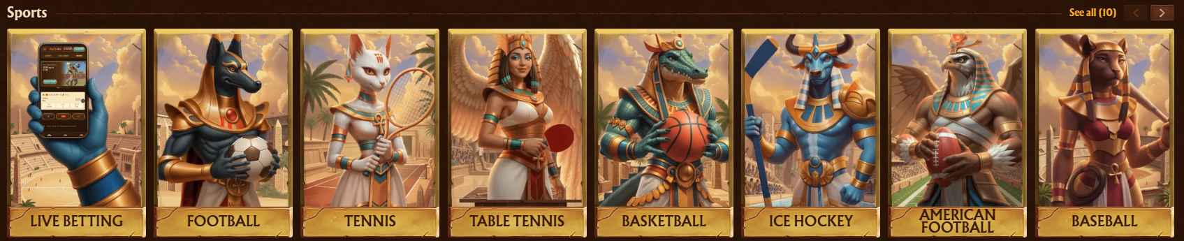 Three thousand-plus games from more than 60 providers. That’s the headline, and it holds up. What makes the library feel coherent rather than just large is the way the Egyptian theme extends into the catalogue itself — there’s a dedicated Egypt section that pulls in every pyramid, scarab, and Book of Ra variant in the collection. It works. If you’re the type to play five different Book of Dead variants in a row, you’ll feel at home here.