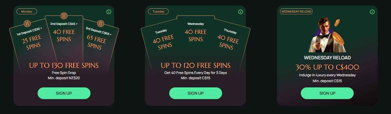 | Free Spins Drops | Every Monday | Up to 65 Free Spins (deposit-based) |