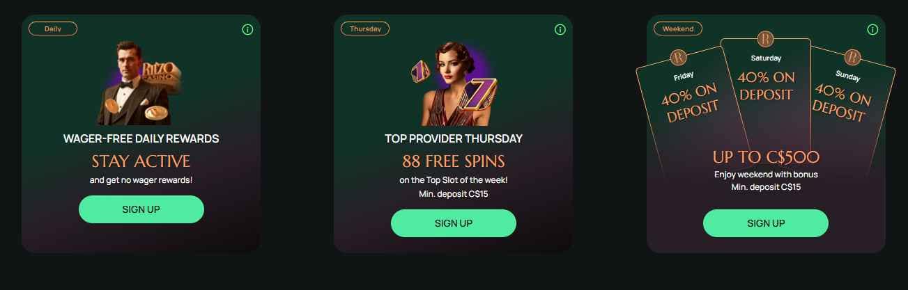 | Weekend Reload | Sat – Sun | 40% up to C$300 |